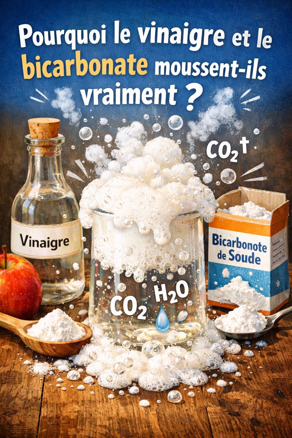 Ce que tu vois, ce n’est pas le vinaigre ni le bicarbonate qui “bouillonnent” :